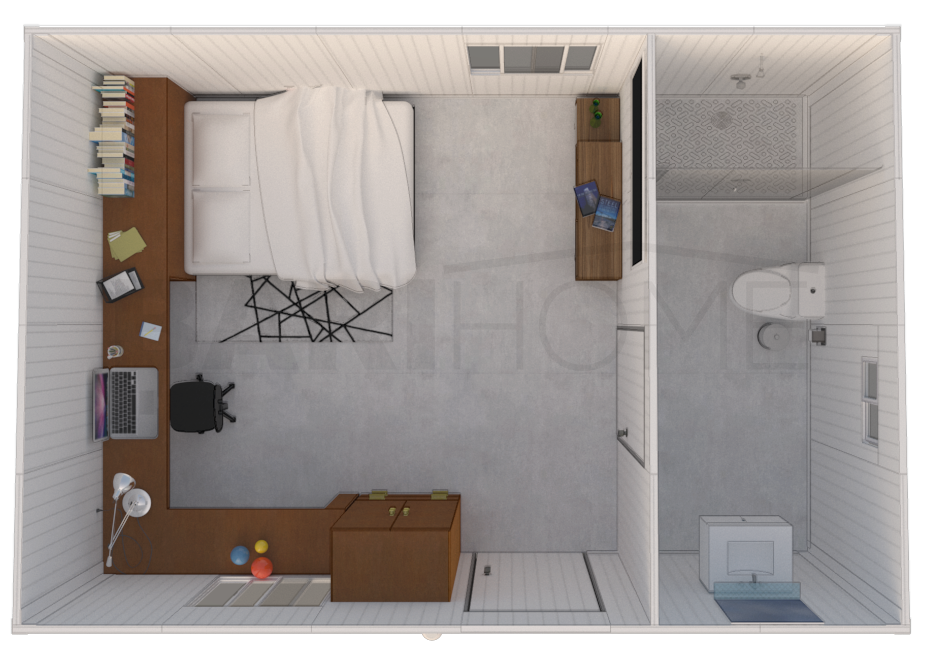 Utilizamos panel bilaminado de poliestireno (2″) y soluciones complementarias que ofrecen aislamiento térmico y acústico desde el primer día. Eso significa ambientes más confortables, menor dependencia del aire acondicionado y una disminución real del consumo energético. El resultado: espacios de trabajo y vivienda con temperatura estable, mayor productividad y reducción de costos operativos a lo largo del ciclo de vida del módulo.